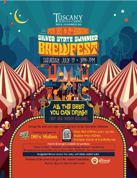Join The Animal Foundation and Tuscany Suites & Casino for their 8th Annual Silver State Brewfest, happening Saturday, July 19th, in the elegant Florentine Ballroom at Tuscany Suites & Casino.