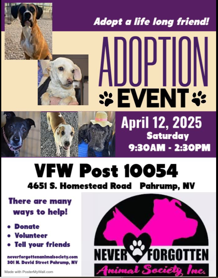 Come out to the VFW to meet your forever friend on Saturday April 12th! The fur babies will be in our beautiful outdoor patio area. Hope to see you then.