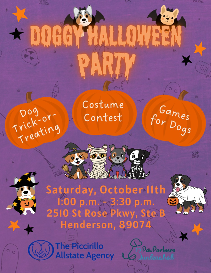 We're having a Doggy Halloween Party with Christina Piccirillo: Allstate Insurance on Saturday, October 11th from 1:00 - 3:30 pm.