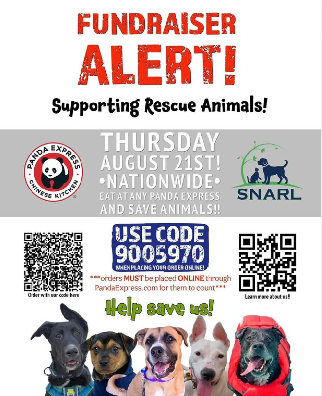 All you have to do is place an online order at PandaExpress.com and apply code 9005970 in the Fundraiser Code box for any order placed on Thursday August 21st and you will be helping us raise the critical funds we need to support the animals of the Southern Nevada Animal Rescue League (orders must be placed online to count**).