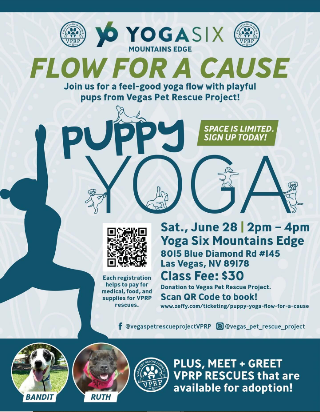 Join YogaSix + Vegas Pet Rescue Project for a heartwarming Flow for a Cause on Saturday, June 28th from 2–4pm!