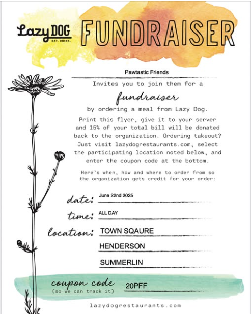 Join us Sunday, June 22nd at any Lazy Dog location in Town Square, Henderson, or Summerlin and enjoy a delicious meal that gives back!
