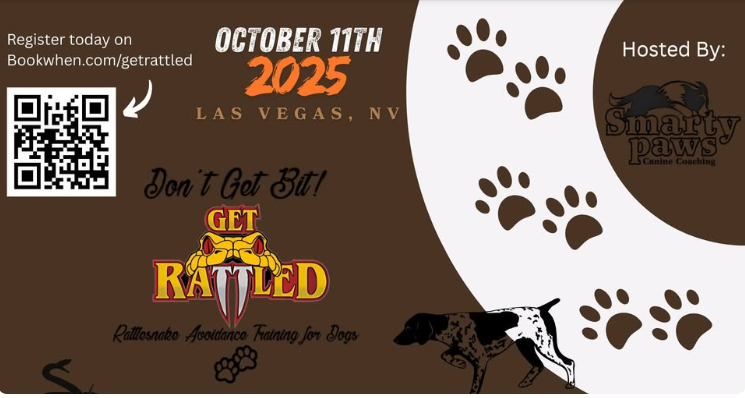 Smarty Paws and University of Nevada Cooperative Extension is hosting Get Rattled to provide this valuable training at the UNCE grounds on October 11th 2025 from 9am to 5pm. Register on Bookwhen.com/getrattled